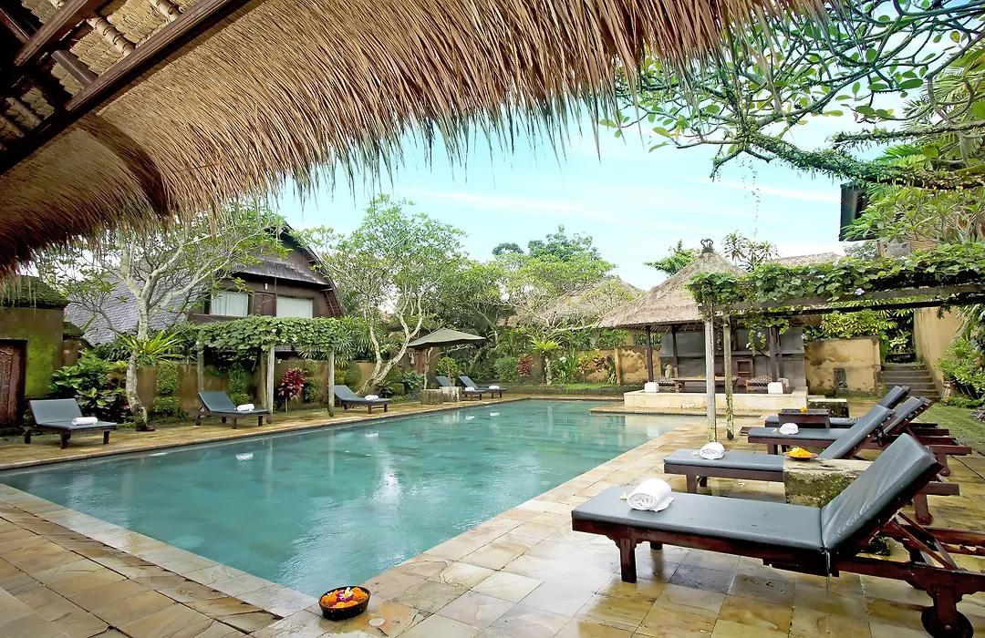 He pasado unos días geniales aquí, la piscina ayudó bastante. Una ubicación buena, un personal excelentemente complaciente, habitaciones bonitas y un desayuno maravilloso. Me ha encantado Ubud, el hotel era magnífico. Tardaba en llegar a la parada del autobús 15 minutos andando...